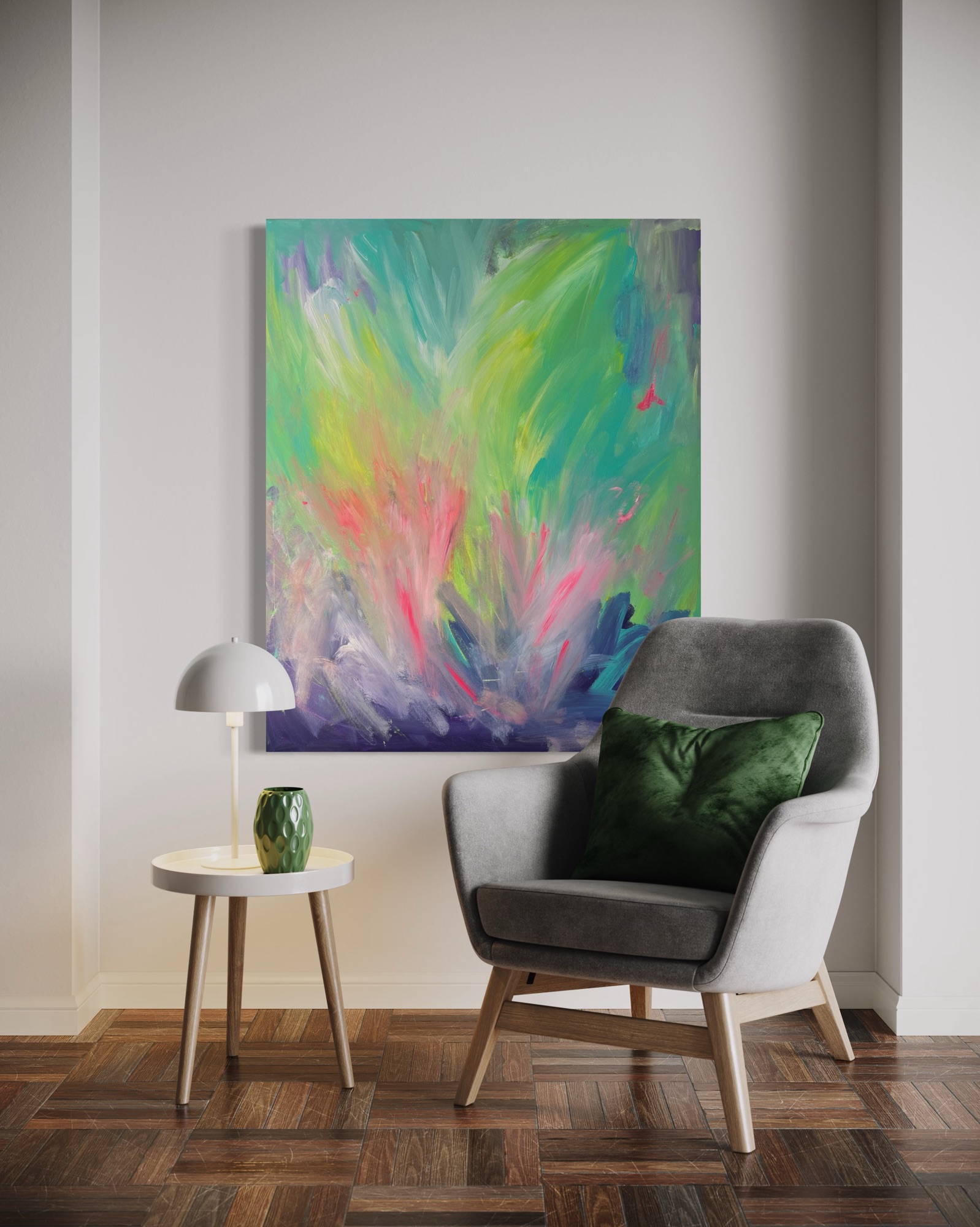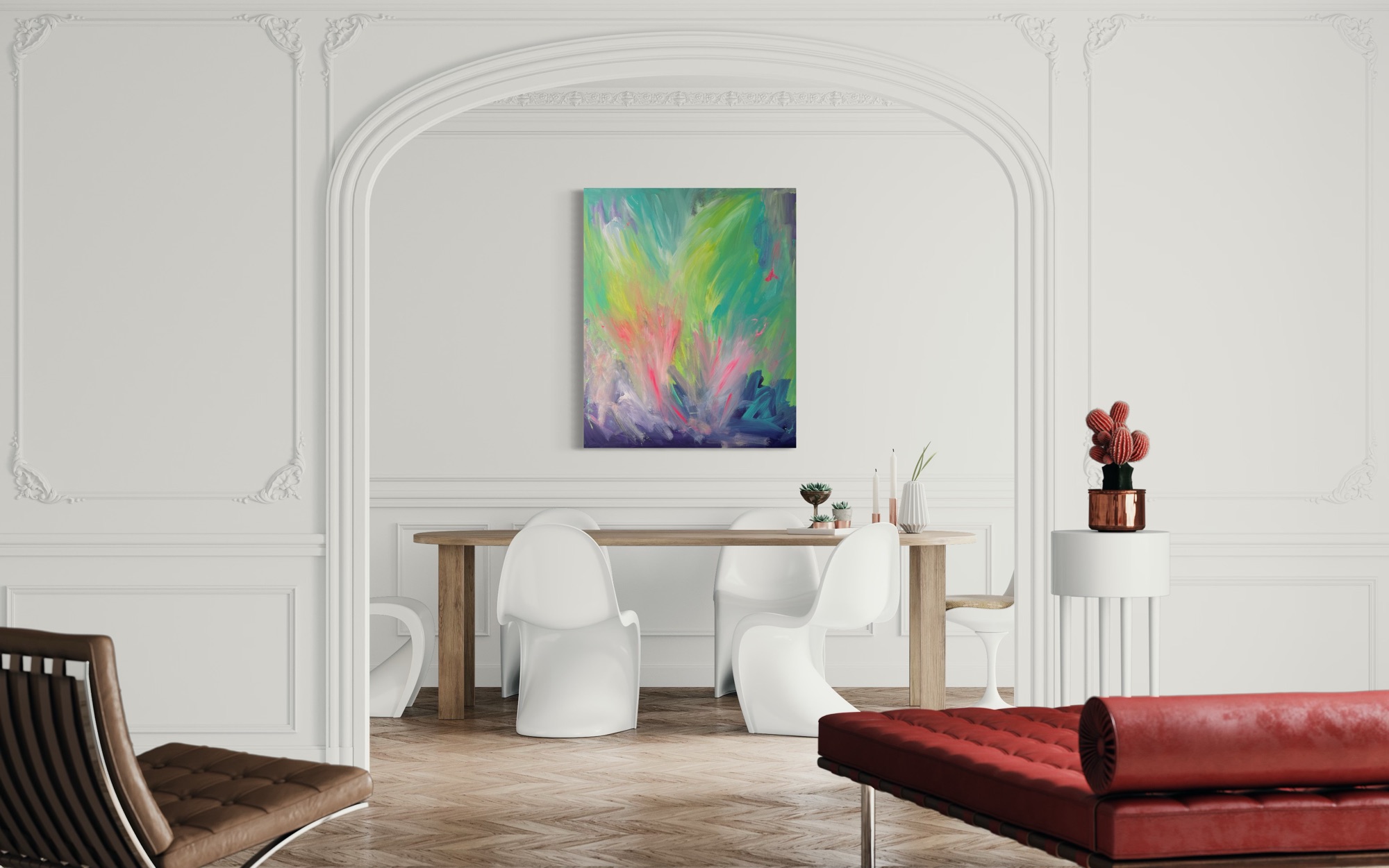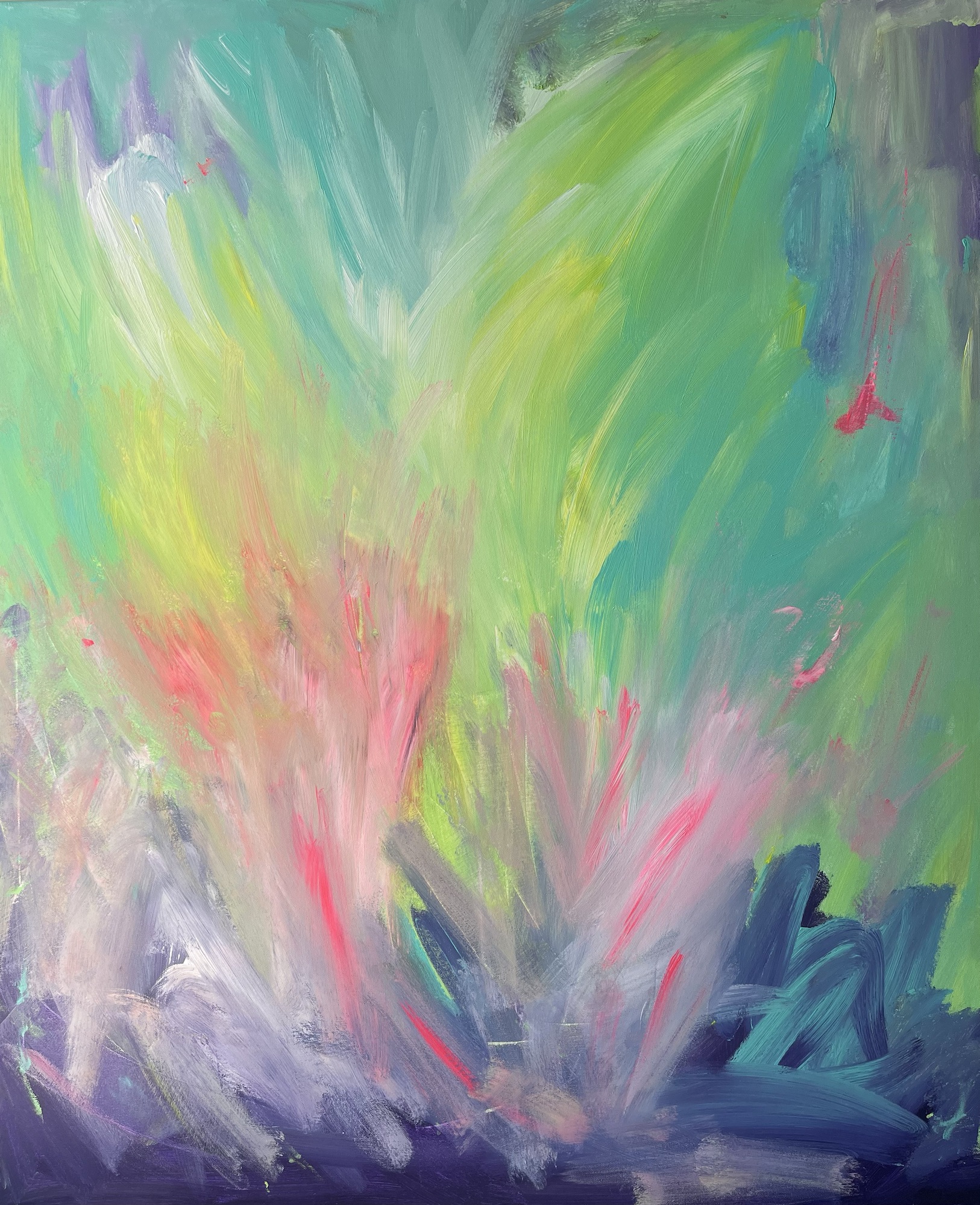 NORTHERN LIGHTS is one of the paintings I did on the few months I spend in Madrid in 2024, from February to June. I travelled to Finland in March, and had the amazing experience of witnessing the Northern Lights over a frozen lake at something like -15Cº. I cannot say I loved the feeling of not feeling my feet for a while, but the experience of seeing the skies moving around in changing colors surely left me speechless.